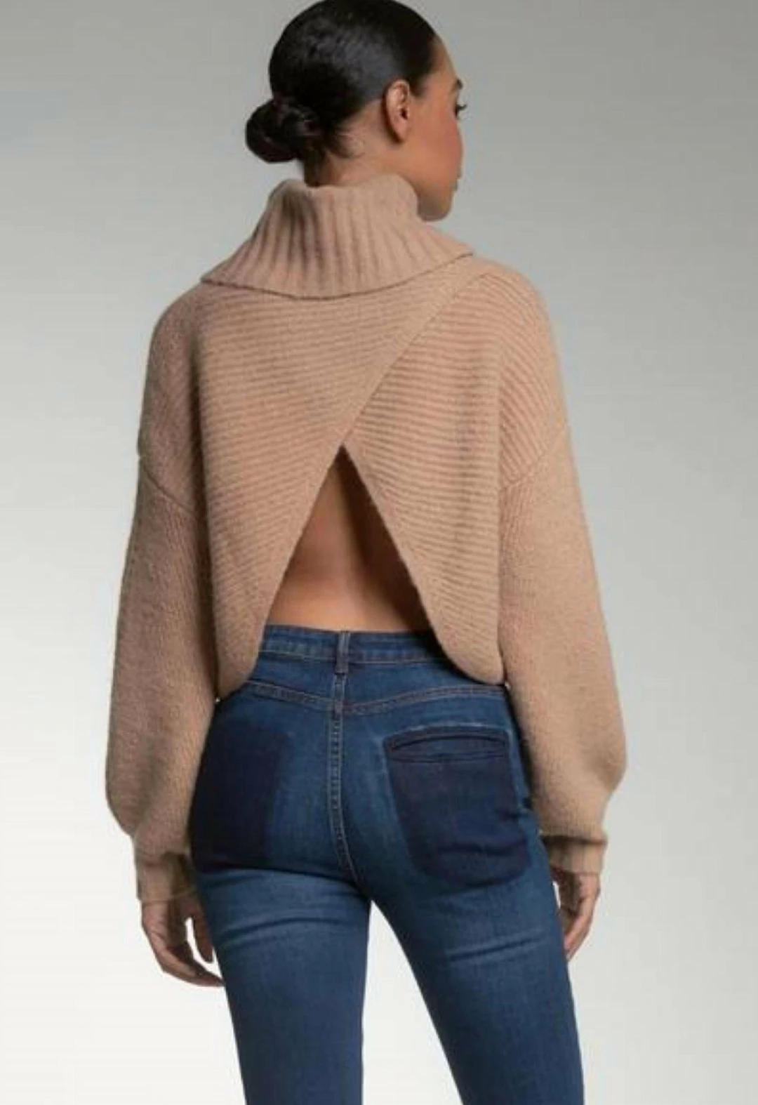 Featuring a chunky cowl neck, this long sleeve has a darling open cross-back detail for a simple yet sexy silhouette. Semi-cropped and fits true to size.FitTrue to size, sweater is supposed to fit��a little cropped��