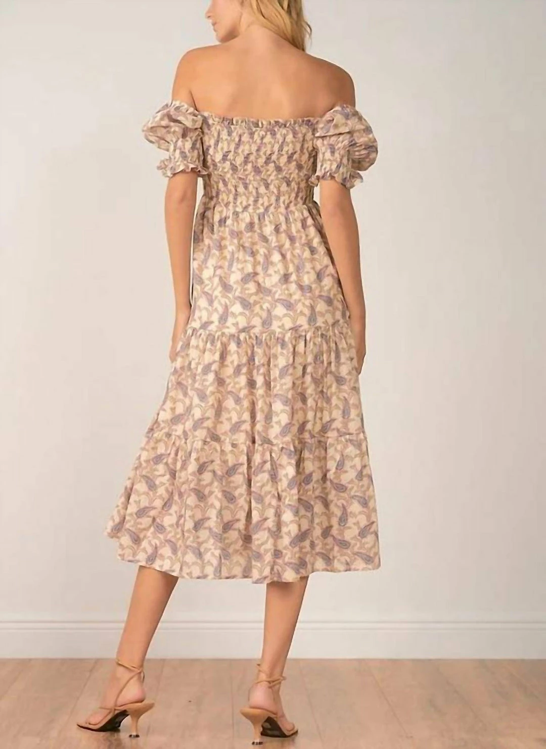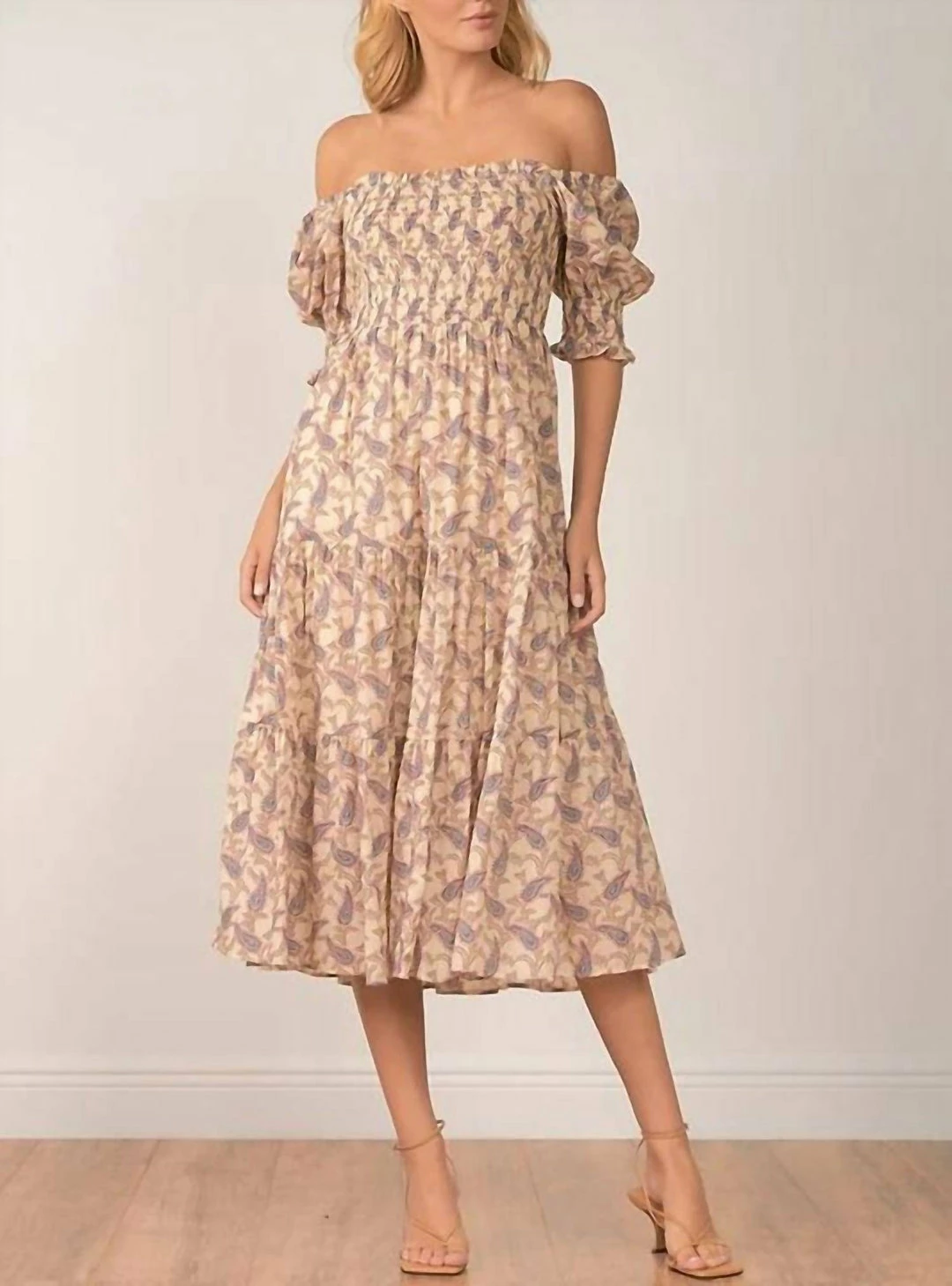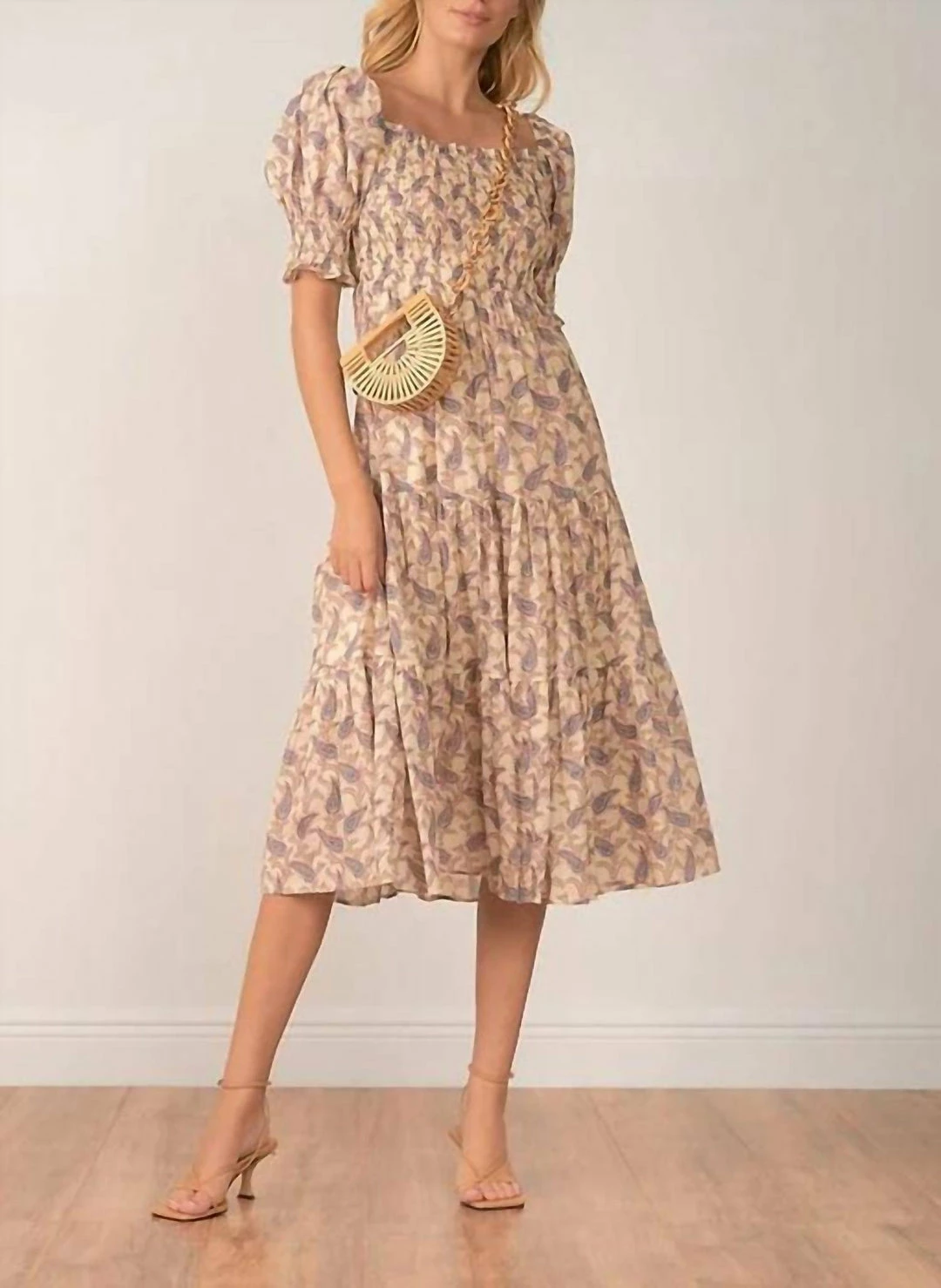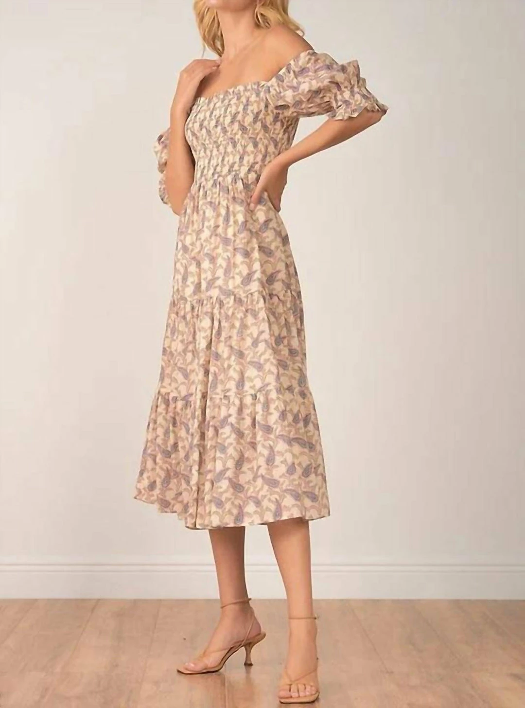 Elan women PUFF SLEEVE PAISLEY MAXI DRESS in Natural