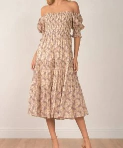As comfortable as it is cute, this dress is a spring classic. Featuring a transitional off-the-shoulder and peasant puff sleeve, this silhouette is perfect for Sunday brunch or any warm-weathered occasion. Detailed with a smocked bodice. You choose the look! Lined.