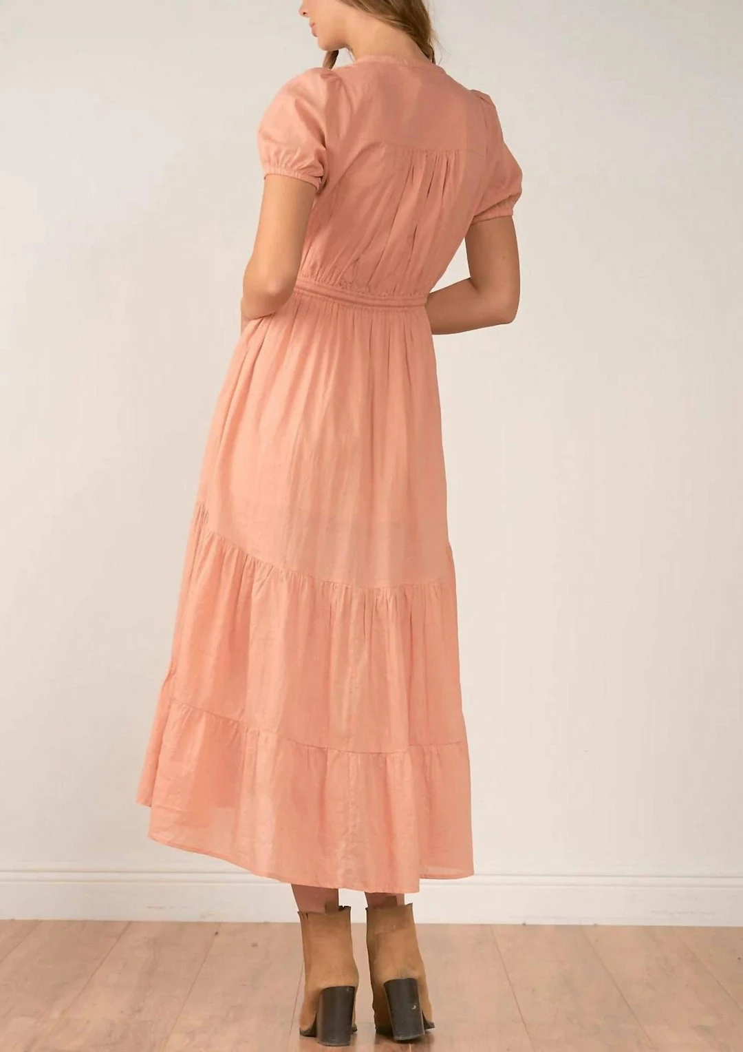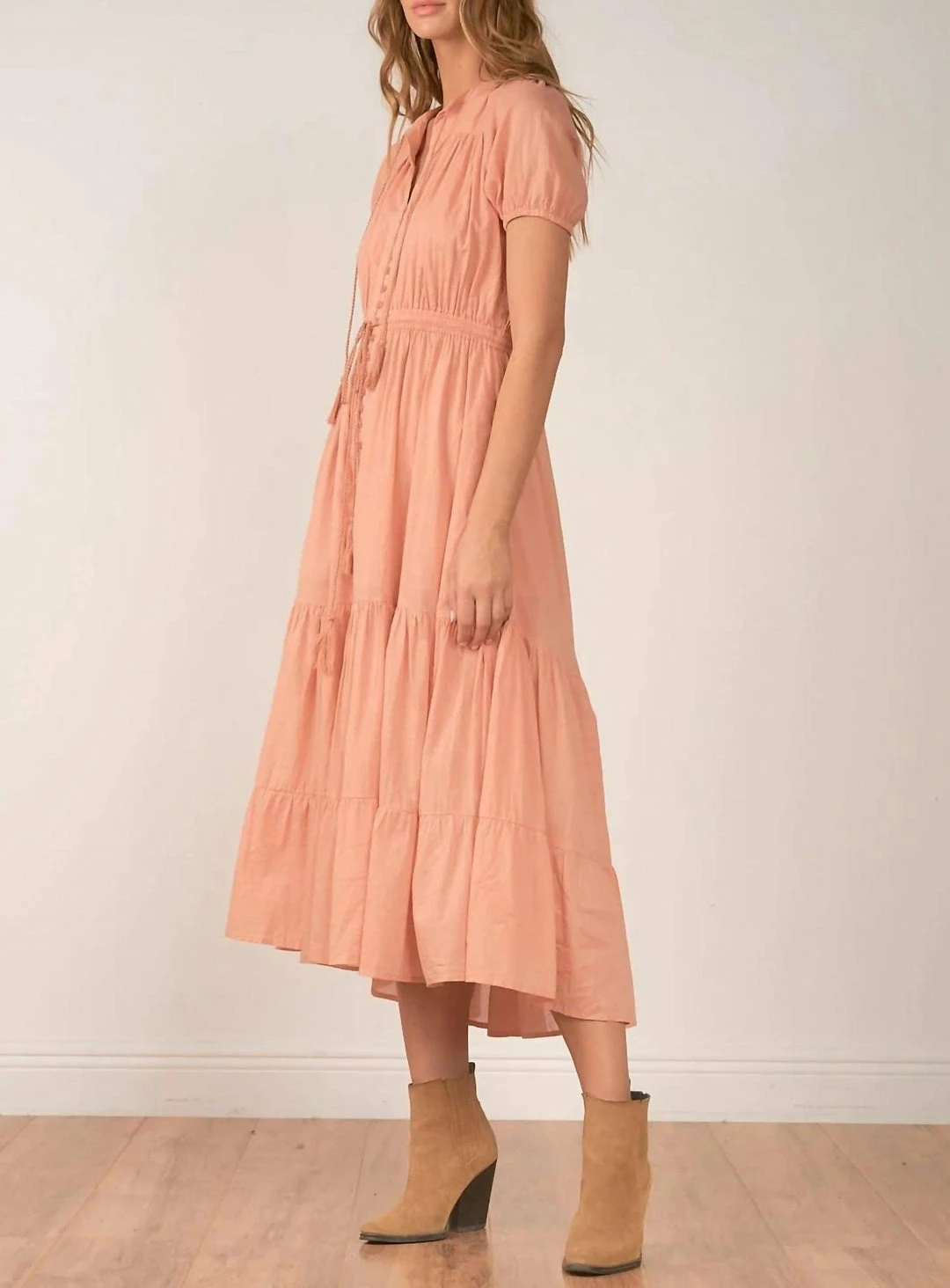 Elan women SHORT SLEEVE BUTTON UP MAXI DRESS in Dusty Rose