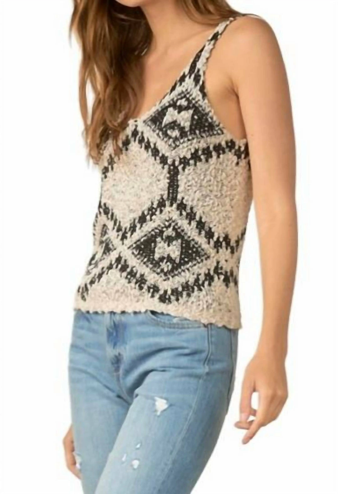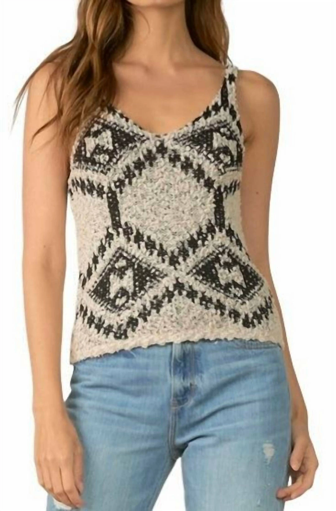 Elan women Vneck Aztec Print Sweater Tank in Off White/Black