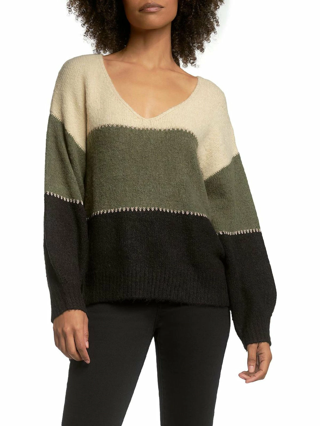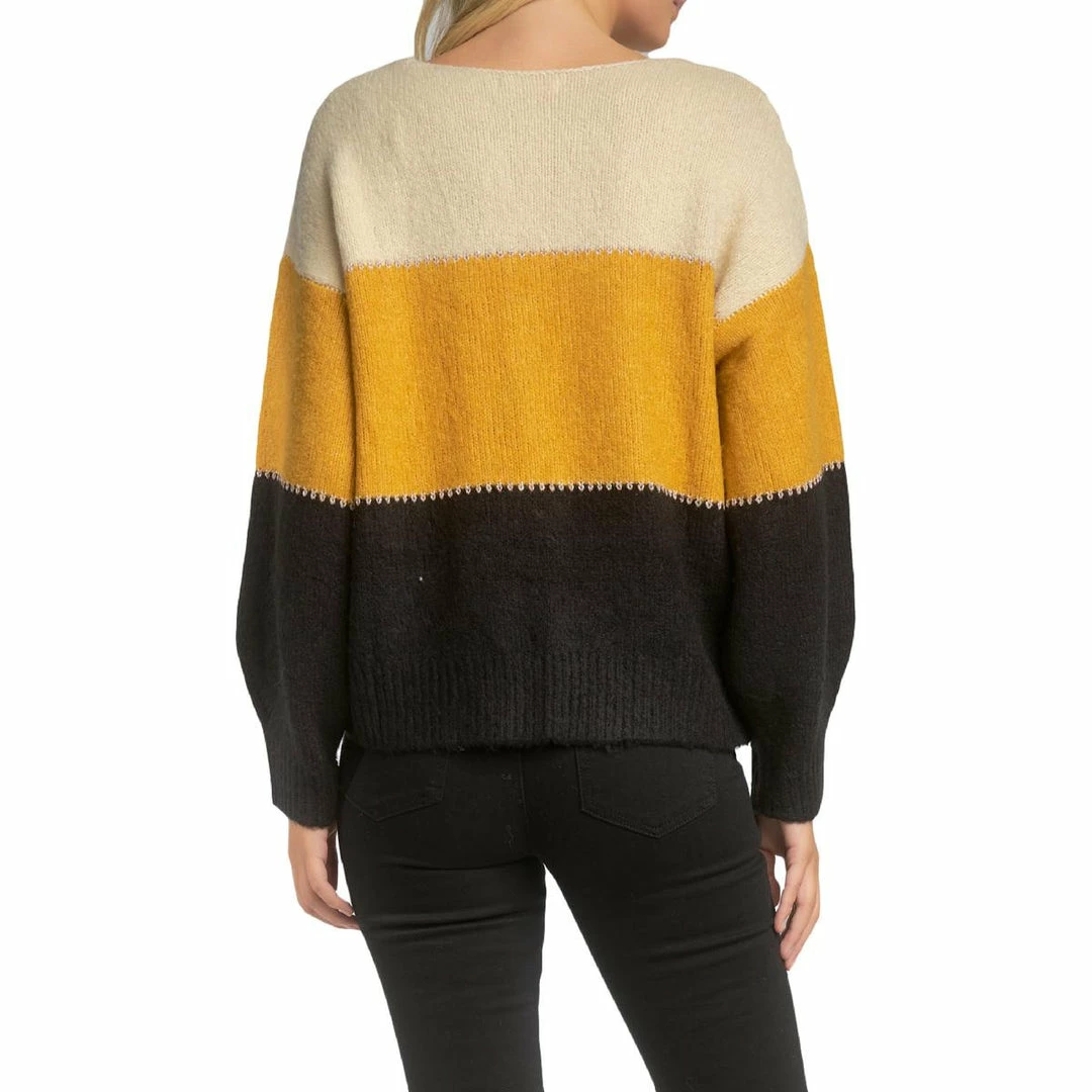 Stay cozy in this oversized colorblock sweater by Elan. Made with Acrylic, Nylon and Spandex. This sweater features colorblock details and a roomy oversized construction. It’s versatile style will be perfect for day to night wear. Pull on. This sweater is guaranteed authentic.