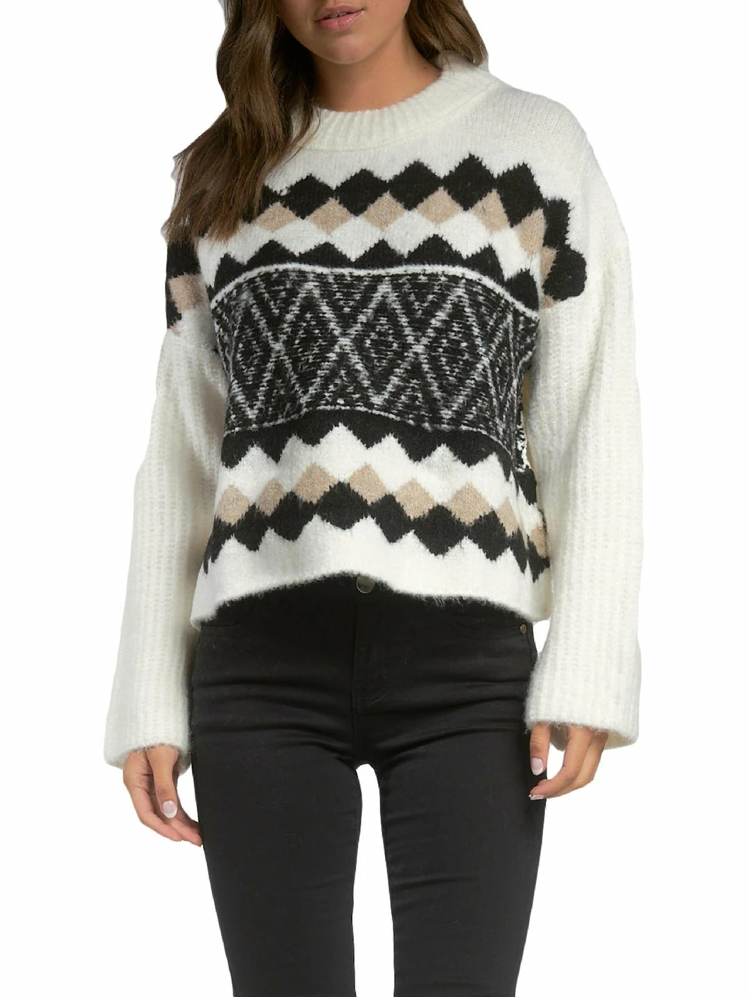 Stay cozy in this knit pattern pullover sweater by Elan. Made with 68% Acrylic, 28% Polyester and 4% Nylon. This sweater’s wintry pattern and soft knit fabric offer effortless cold weather style. It features a crewneck construction with long sleeves. Pull on. This sweater is guaranteed authentic.