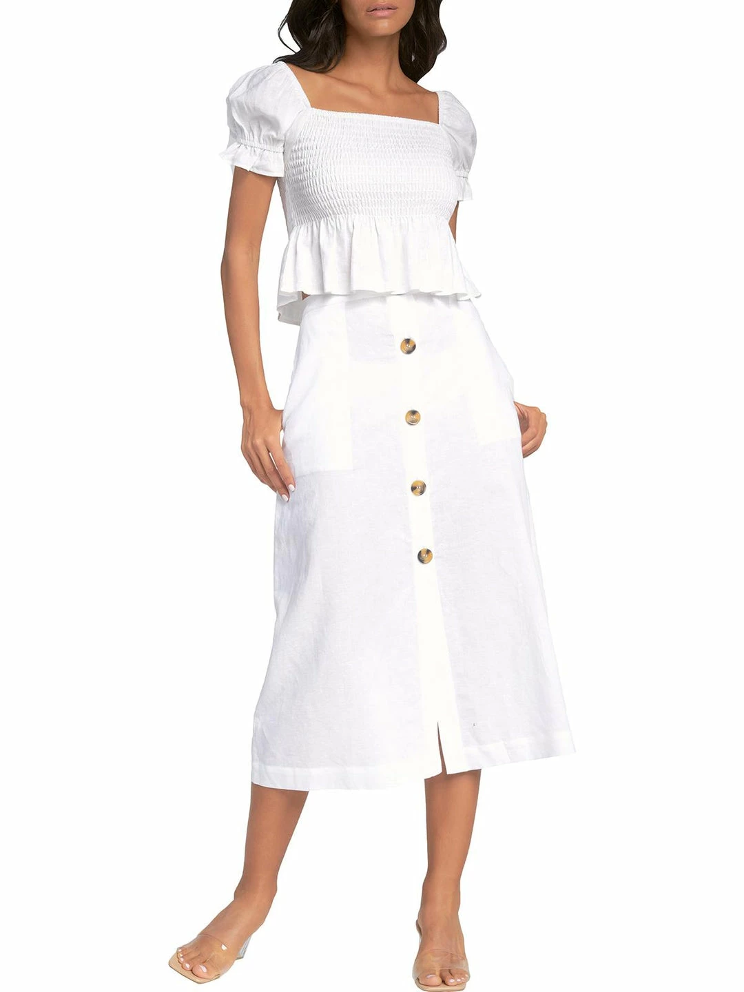 Fall in love with this smocked puff sleeve peplum top by Elan. Made with 100% cotton. Breezy fabric and charming smocked details offer simple, summer ready style. It features charming puff sleeves and a square neckline. Wear it with your favorite denim or a midi skirt before heading on that date. Pullover. This top is guaranteed authentic.
