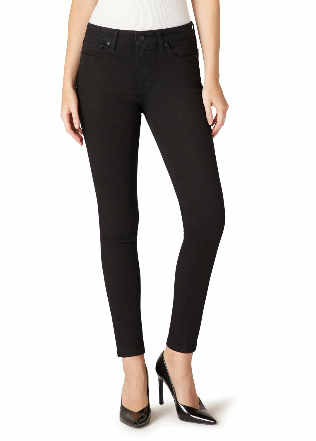 Cut from denim with shape-hugging stretch, these skinny jeans hit at the ankle and are designed especially for hourglass silhouettes.
